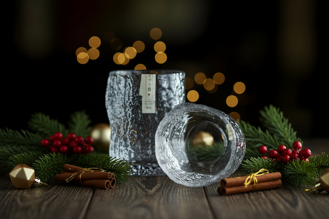 Bicchiere Edo Kiriko – ‘Snowfall’ (Cristallo trasparente) – Scatola in legno
