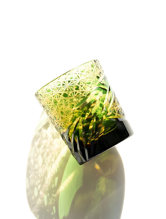 Bicchiere Edo Kiriko – “Giove” (Verde) – Scatola in legno