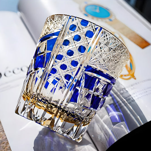 Bicchiere Edo Kiriko – “Costellazione Zaffiro” – Scatola in legno