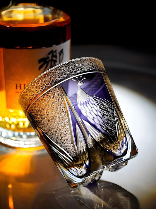 Bicchiere Edo Kiriko – ‘Pavone Viola’ – Scatola in legno