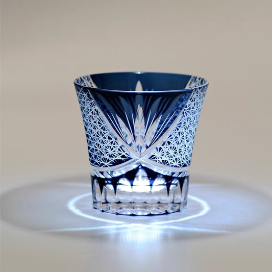 Bicchiere Edo Kiriko – 'Fiamma Blu Scuro' – Scatola in legno