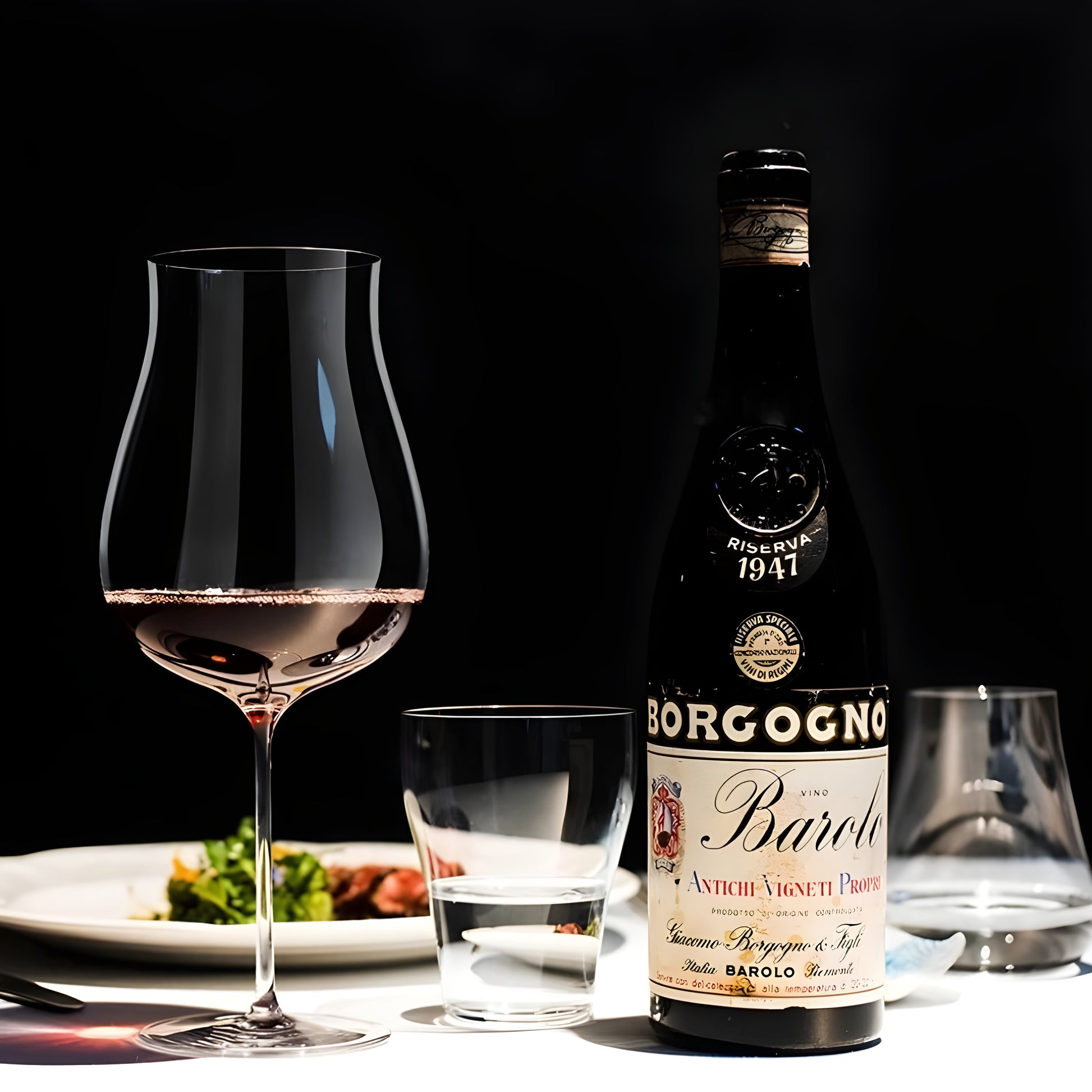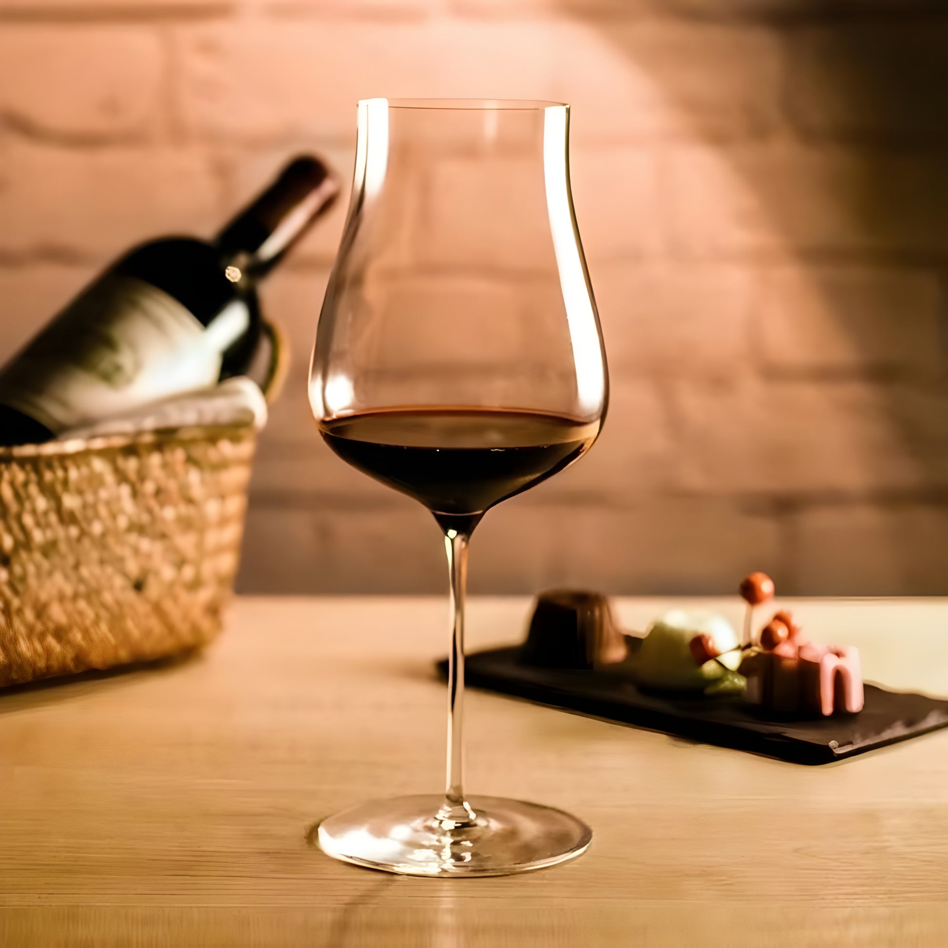 • Coppa a tulipano con spalla ampia e imboccatura leggermente chiusa per convogliare il bouquet e bilanciare ossigenazione e concentrazione.